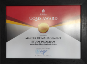 Coinciding with the Ubaya’s 55th Anniversary on Saturday, March 11, 2023, the Master of Management (MM Ubaya) was awarded the Ubaya Quality Management System Award